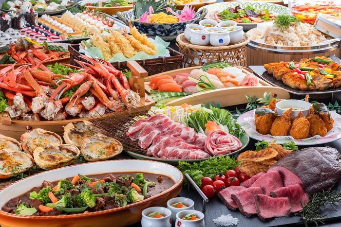 ブルーリッジホテルが自信を持ってお届けする「ごちそうバイキング」。 お子様からご年配の方までご賞味いただける、バラエティー豊かなメニューが盛り沢山です。 (※料理写真はイメージです。変更になる場合があります。)