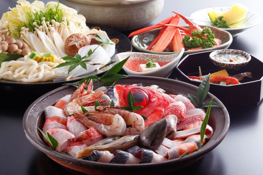 ― 朝獲れ海鮮すき鍋 ― 日本海が育んだ海の幸を豪快に 上品なお出汁の香りが食欲を搔き立てる 地元でとれた鮮度抜群のお魚や貝、海老などを料理人が吟味してご用意いたします。 〆はおうどんで、魚介のコクが凝縮されたお出汁とともに最後までお楽しみください。 ┈┈┈ ❁ ❁ ❁ ┈┈┈┈┈┈┈┈┈┈┈┈┈ お品書き詳細はこちら ※リンク先のページ中央部に記載しております ┈┈┈┈┈┈┈┈┈┈┈┈┈ ❁ ❁ ❁ ┈┈┈ ※4月、5月は香住ガニ(紅ズワイガニ)を皿物でご用意いたします。