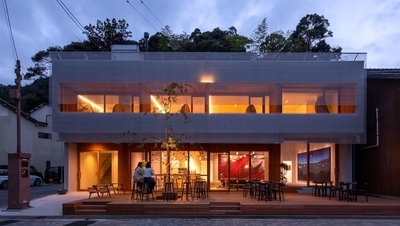 【 UTSUROI TSUCHIYA ANNEX 】 2019年にグッドデザイン賞を受賞。 城崎旧消防署をリノベーションし、 2018年につちや旅館の別館として誕生しました。 (1F:カフェ&日本画ギャラリー/2F:宿泊施設)