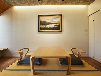 1階にはおしゃれなカフェ&日本画ギャラリーを併設。