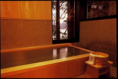 海が見えるひのき風呂がございます。